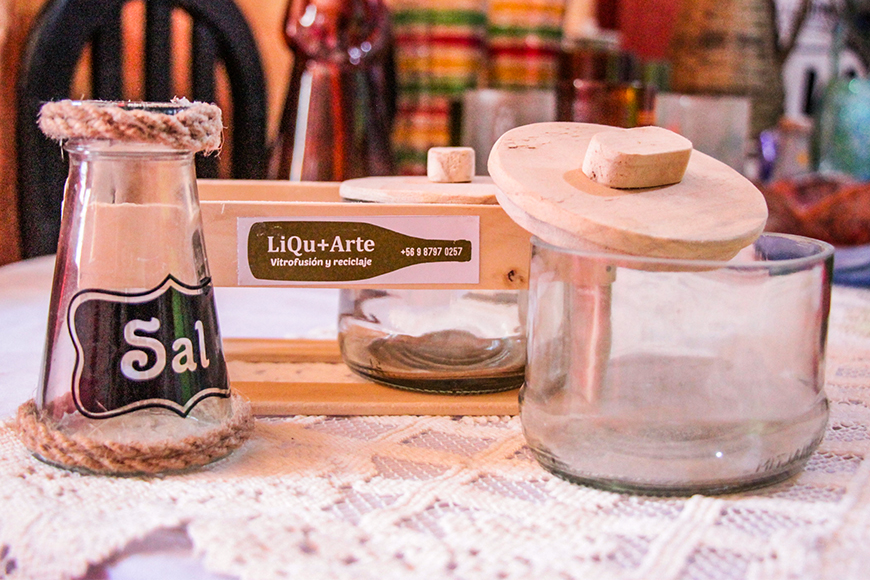 Esta dupla creativa siempre ha trabajado desde su casa, contando con un taller en el cual tienen cientos de botellas más y otro tipo de materiales que reutilizan para usarlos en su casa y para la venta. Desde ahí, este matrimonio se entretiene creando y ofreciendo sus productos. Incluso, tienen un emprendimiento llamado “LIQU+ARTE, VITROFUSIÓN Y RECICLAJE”, con el que han ganado diferentes fondos concursables y se ha hecho presentes en diversas exposiciones y ferias de emprendedores.
